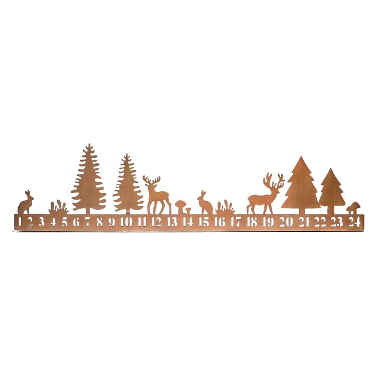Set a serene festive tone with this copper advent tealight holder, featuring a tranquil woodland scene that stretches 70cm wide.