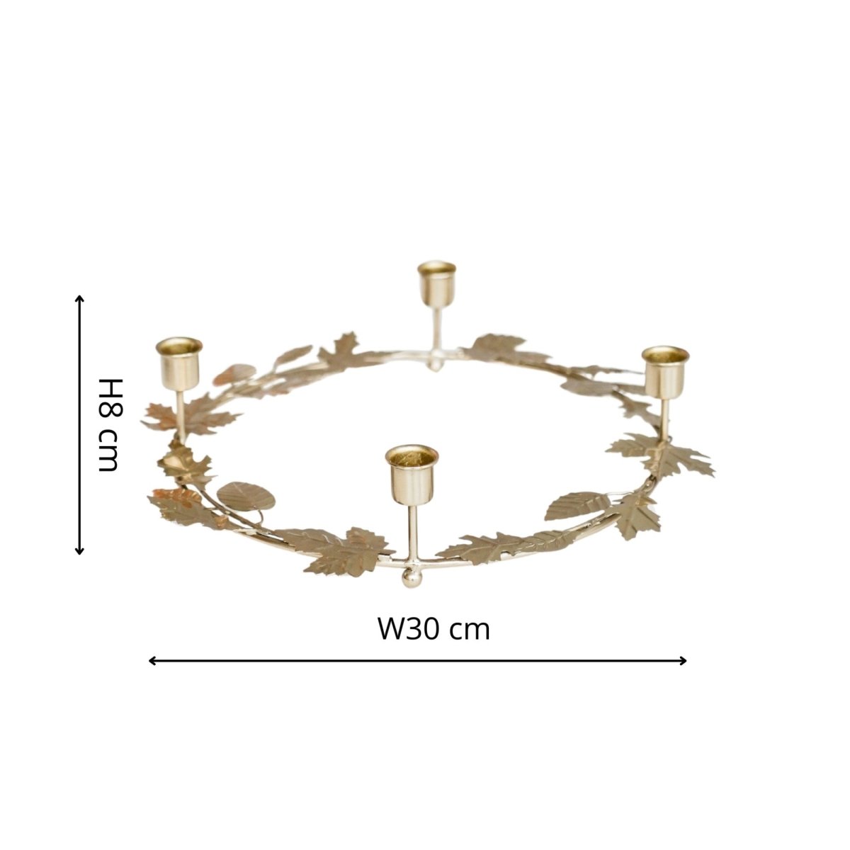 Autumn Wreath Candle Holder Centrepiece Gold H8cm D30cm