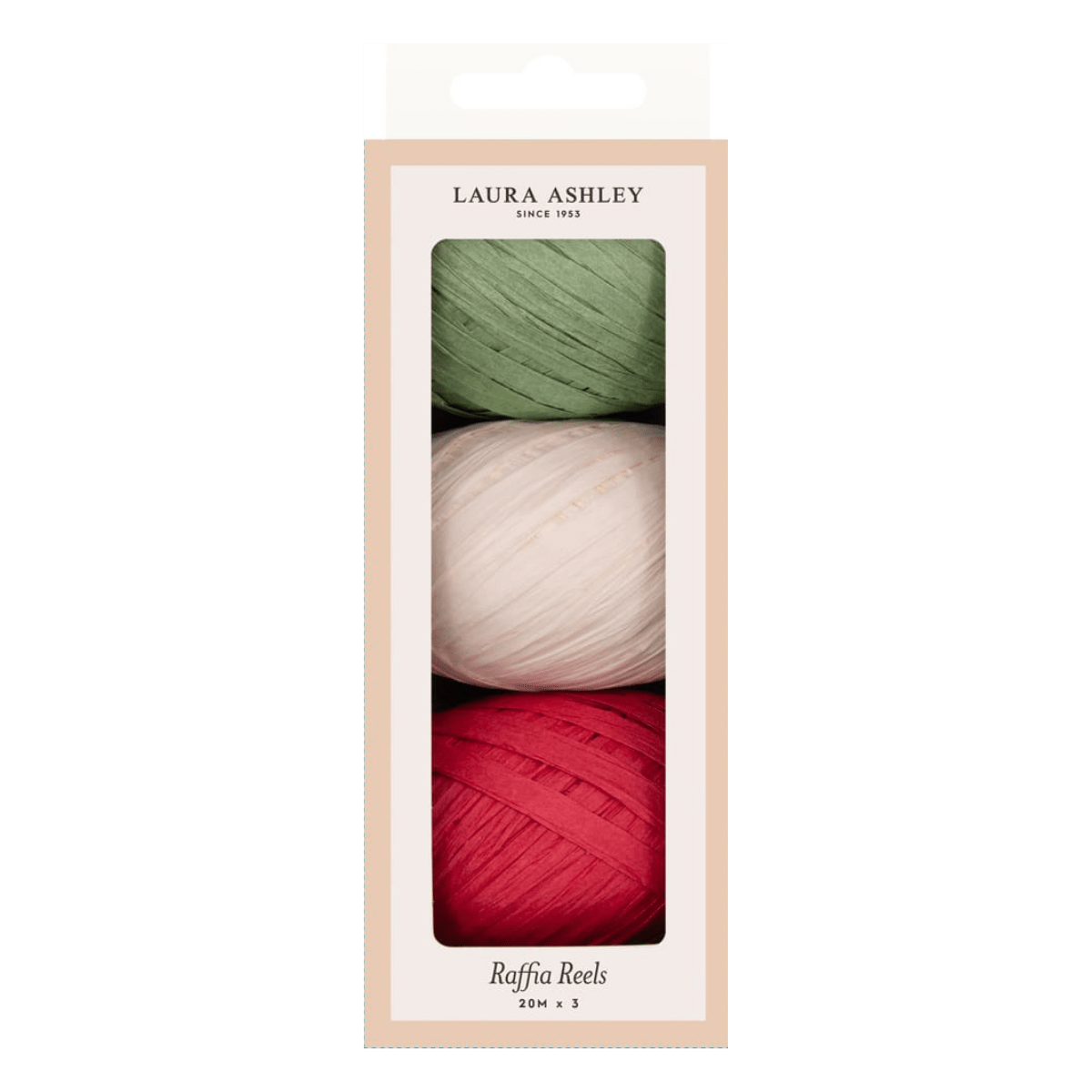 n tandem with our Laura Ashley Festive Botanicals tissue paper, we are delighted to introduce the Laura Ashley Raffia. This set includes 3 x 20m reels of raffia, adding a touch of festive charm to your Christmas wrapping.