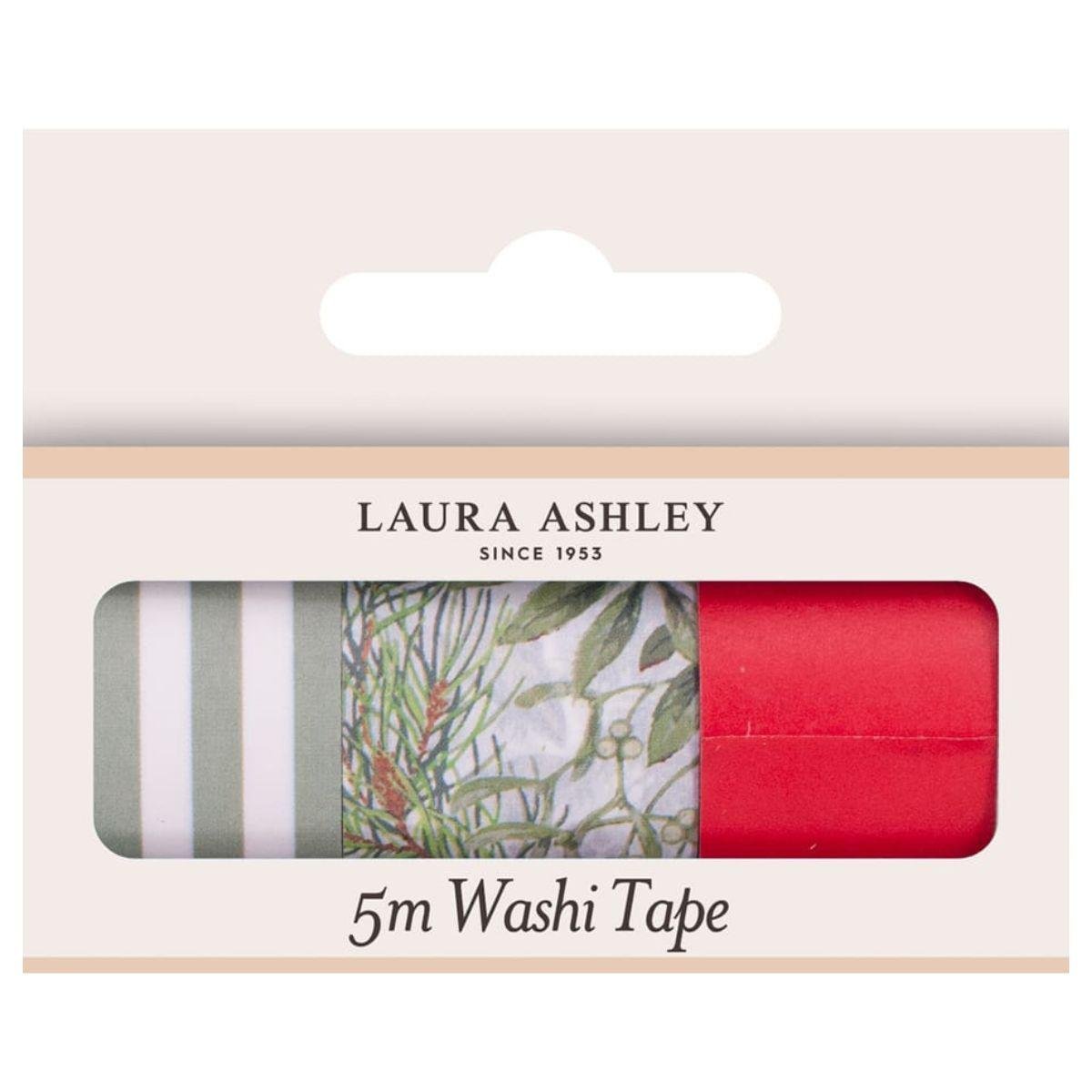 Christmas Washi Wrapping Tape - Laura Ashley Red Festive Botanical Design - 3 x 5m Rolls