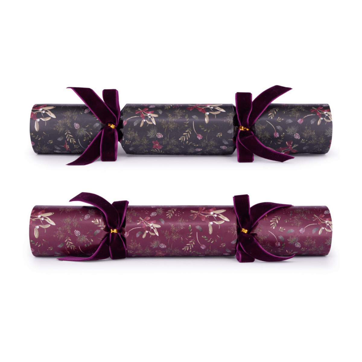 Make your holiday celebrations eco-conscious and elegant with this set of six 12-inch handmade Christmas crackers in a rich purple and green hue.