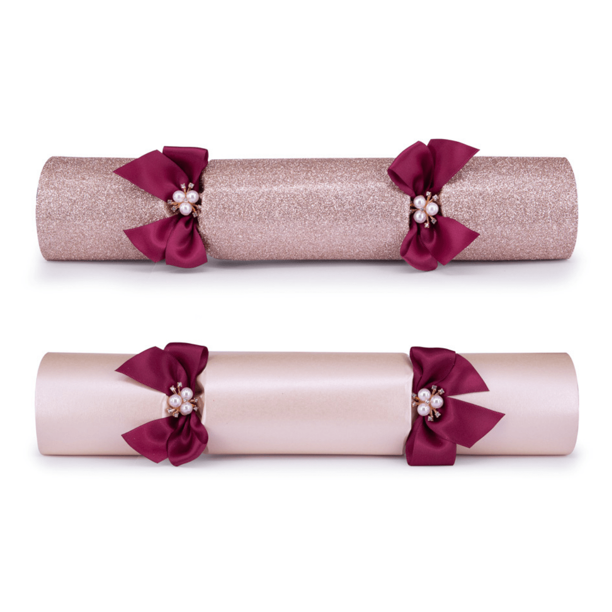 Finished in a rich burgundy hue with a satin sheen, each cracker is meticulously handmade, bringing a bespoke charm to your holiday table. Perfectly sized at 13 inches, they make an unforgettable addition to family dinners, festive parties, or special gatherings.
