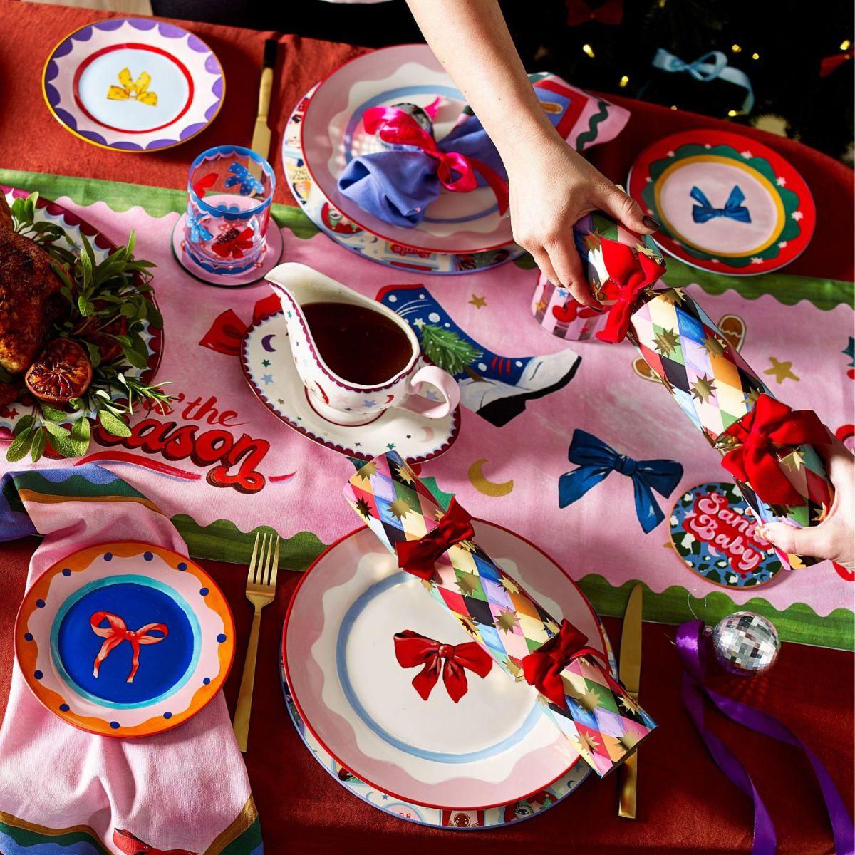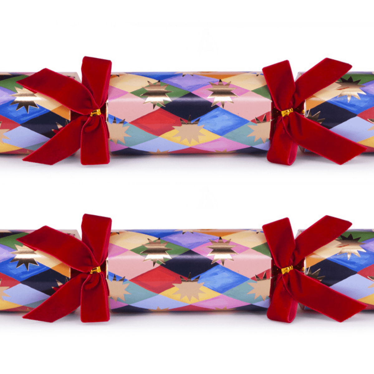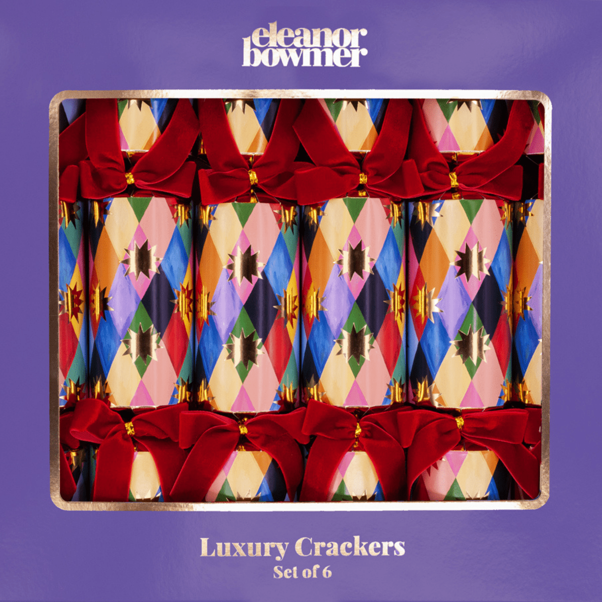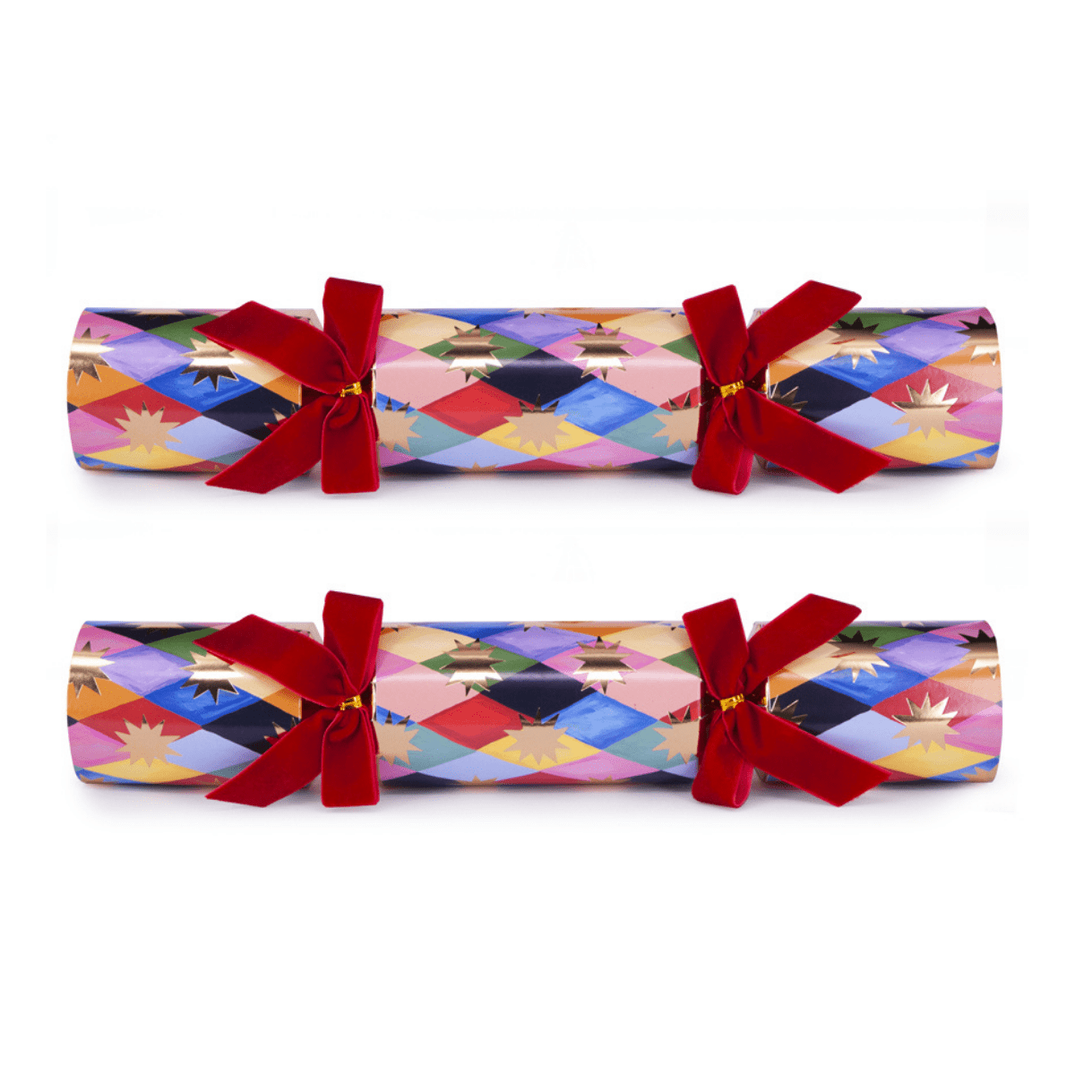 Add a sustainable sparkle to your festivities with this set of six Harlequin Eco Christmas Crackers by Eleanor Bowmer.