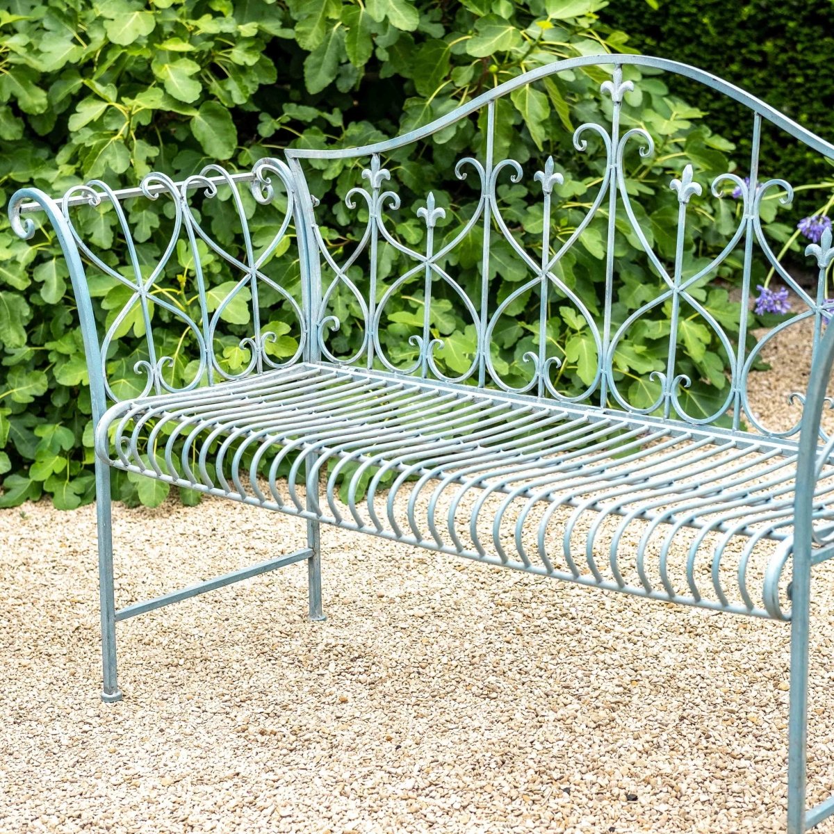 Transform your outdoor retreat with this rustic vintage garden bench, finished in an antique blue that radiates timeless countryside charm. The curved arms and intricate Fleur de Lys detail offer a delicate elegance, seamlessly blending style and practicality. Its durable steel blend construction ensures it withstands the elements, making it ideal for a patio, garden, or tucked beneath your favourite tree for a serene escape. Designed for effortless assembly, the hinged back and seat bolt securely to the legs. Whether nestled into a quiet corner or displayed centre-stage, this 2-3 seater outdoor bench invites you to rest, reflect, and reconnect...