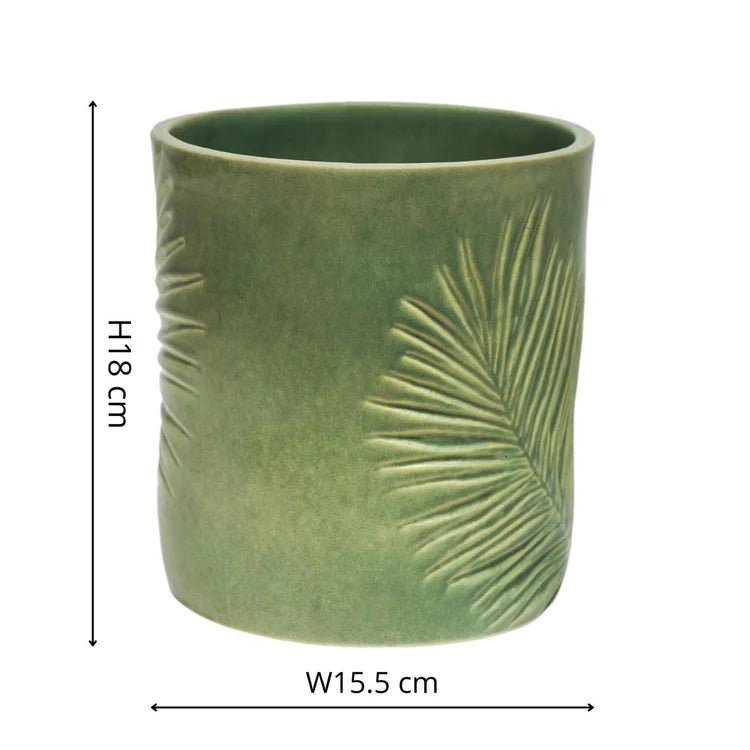 Kew Gardens Stoneware Sago Palm Leaves Indoor Planter - Olive Green & Handmade