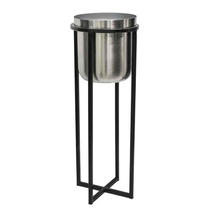 A bold yet timeless addition to any interior, this antique pewter indoor planter stand exudes vintage-inspired sophistication. Its sleek black metal frame and eye-catching finish elevate it from humble planter to statement decor piece. Standing a striking 58cm tall, it commands attention as the focal point for lush greenery or faux florals. UV stable and waterproof, this versatile planter fits seamlessly into living rooms, kitchens, offices and beyond. Curate your ideal indoor oasis by displaying vibrant plants or colourful flowers. Or, let it shine on its own as a sculptural accent. An ideal gift for bringing natural beauty indoors, this planter's durable metal construction ensures many years of enjoyment and style. Perfect for the home, interior design enthusiasts will adore this one-of-a-kind indoor plant display.