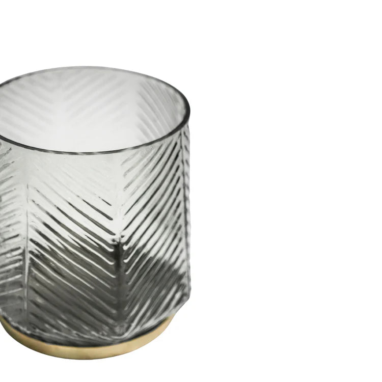 Elm Embossed Votive Glass Candle Holder - Clear Grey With Tapered Neck