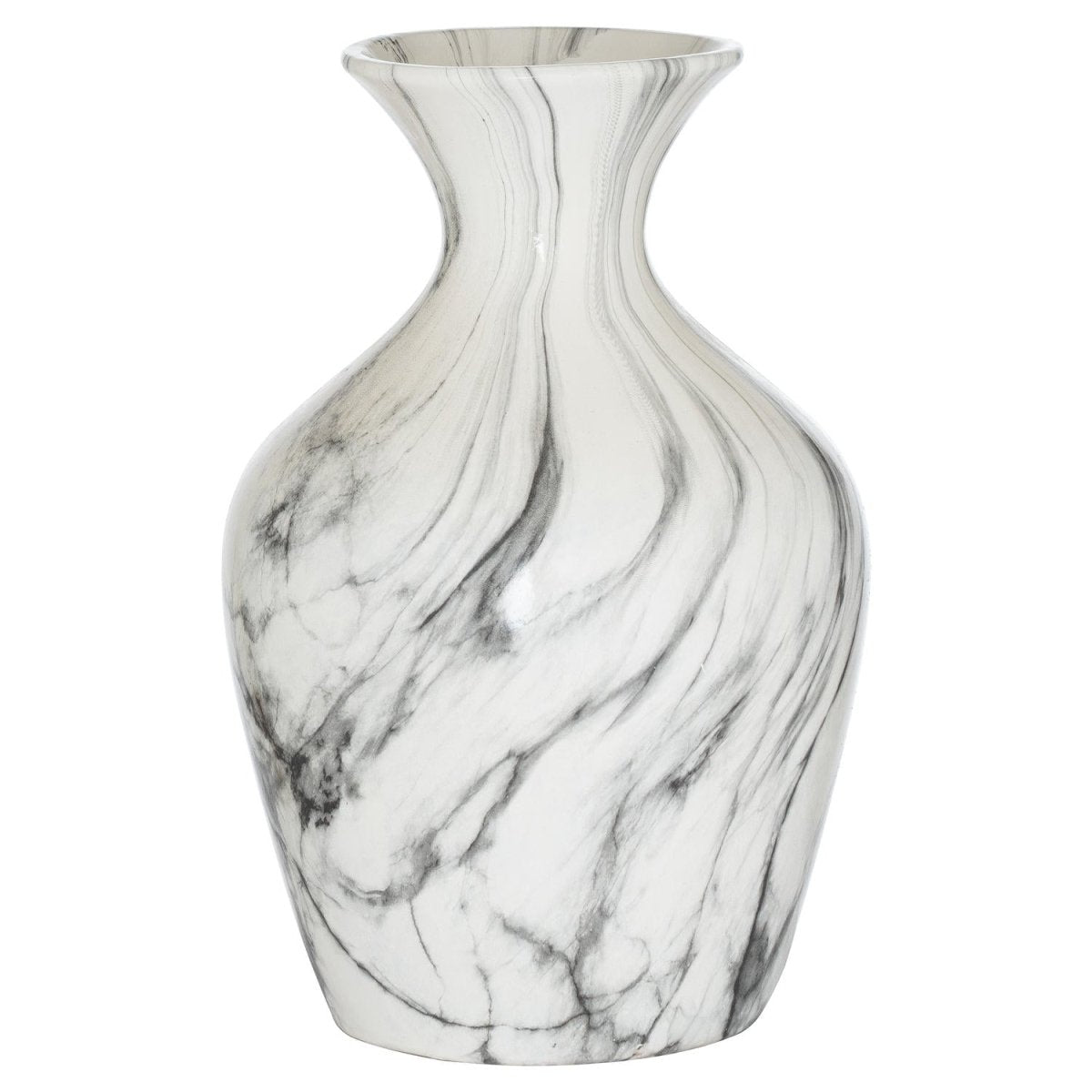 This is the Marble Ellipse Large Vase. This stylish vase boasts a completely unique hand-dipped marble finish to the ceramic that will wow in any space. The marble effect finish to this elegant vase allows you to layer extra texture into a space. Our collection of marble vases team beautifully with our faux flowers, particularly pure white blooms and eucalyptus.