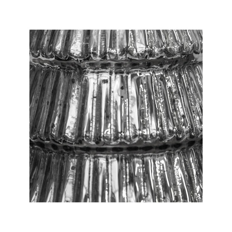 With its ribbed silver glass design, this Christmas decoration exudes timeless sophistication, perfect for adorning tables, consoles, mantels, or window sills. Its compact size and refined aesthetic make it a versatile addition to any festive display.