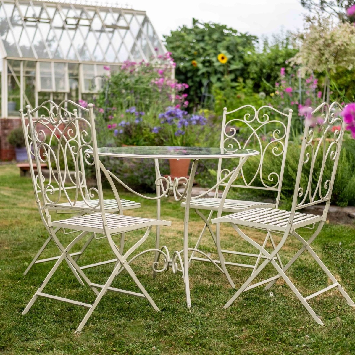 Gather in style with this Cheltenham Garden Furniture Bistro Set, a four-seater marvel crafted for the outdoors in a versatile cream finish.