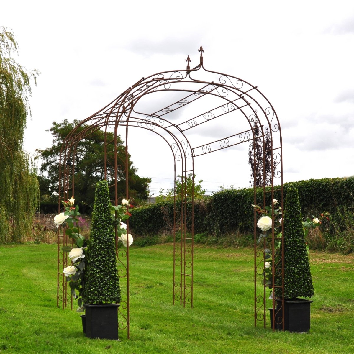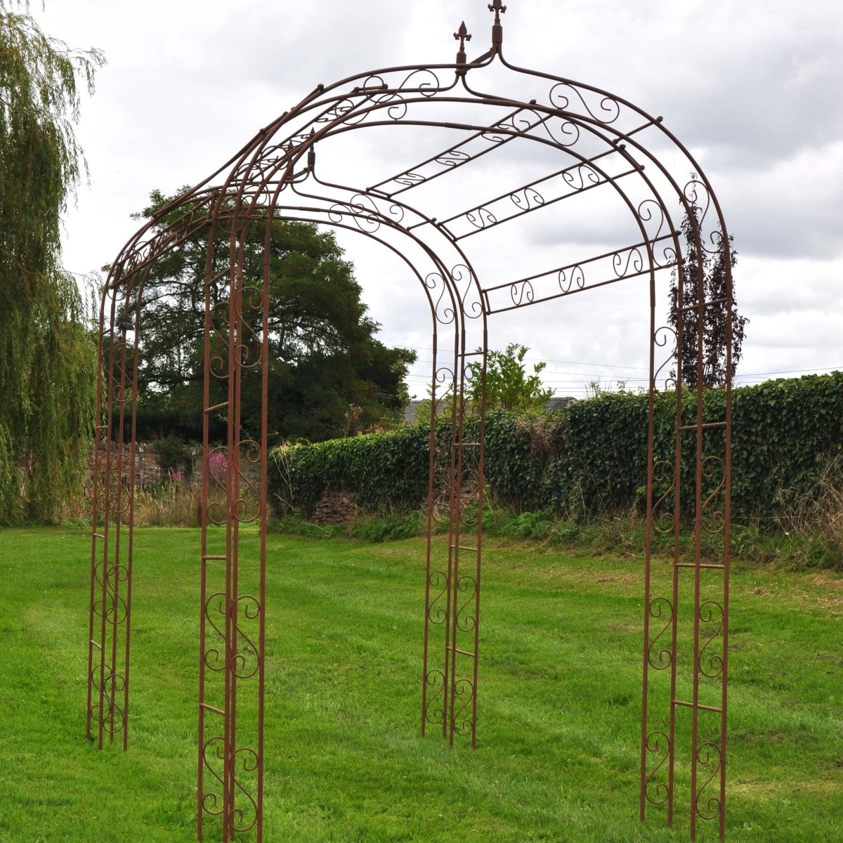 The steel frame features a striking rusty iron finish, blending effortlessly with outdoor settings. Ideal for climbing plants, this Gothic garden tunnel doubles as a trellis and a captivating focal point, adding both structure and elegance to your space. Use it to create defined areas or invite a touch of nature and wildlife into your garden.