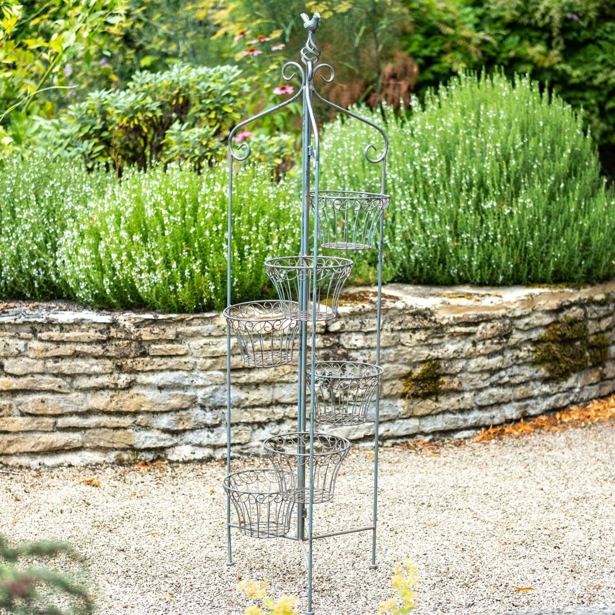 Showcase your greenery with this folding outdoor plant stand, featuring an antique blue finish for a touch of vintage charm in your garden. Designed to hold up to six pots, its tiered structure offers an elegant way to display plants while saving space. The foldable steel frame ensures durability and easy storage, making it perfect for patios, gardens, or any outdoor space. Whether you're creating a lush patio oasis or a functional outdoor plant table, this stand combines style and practicality, beautifully blending nature with timeless design.