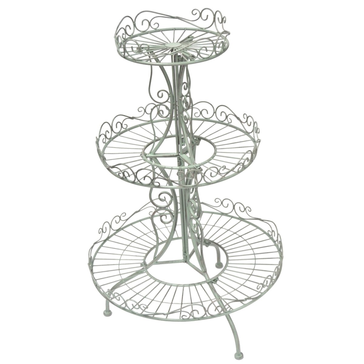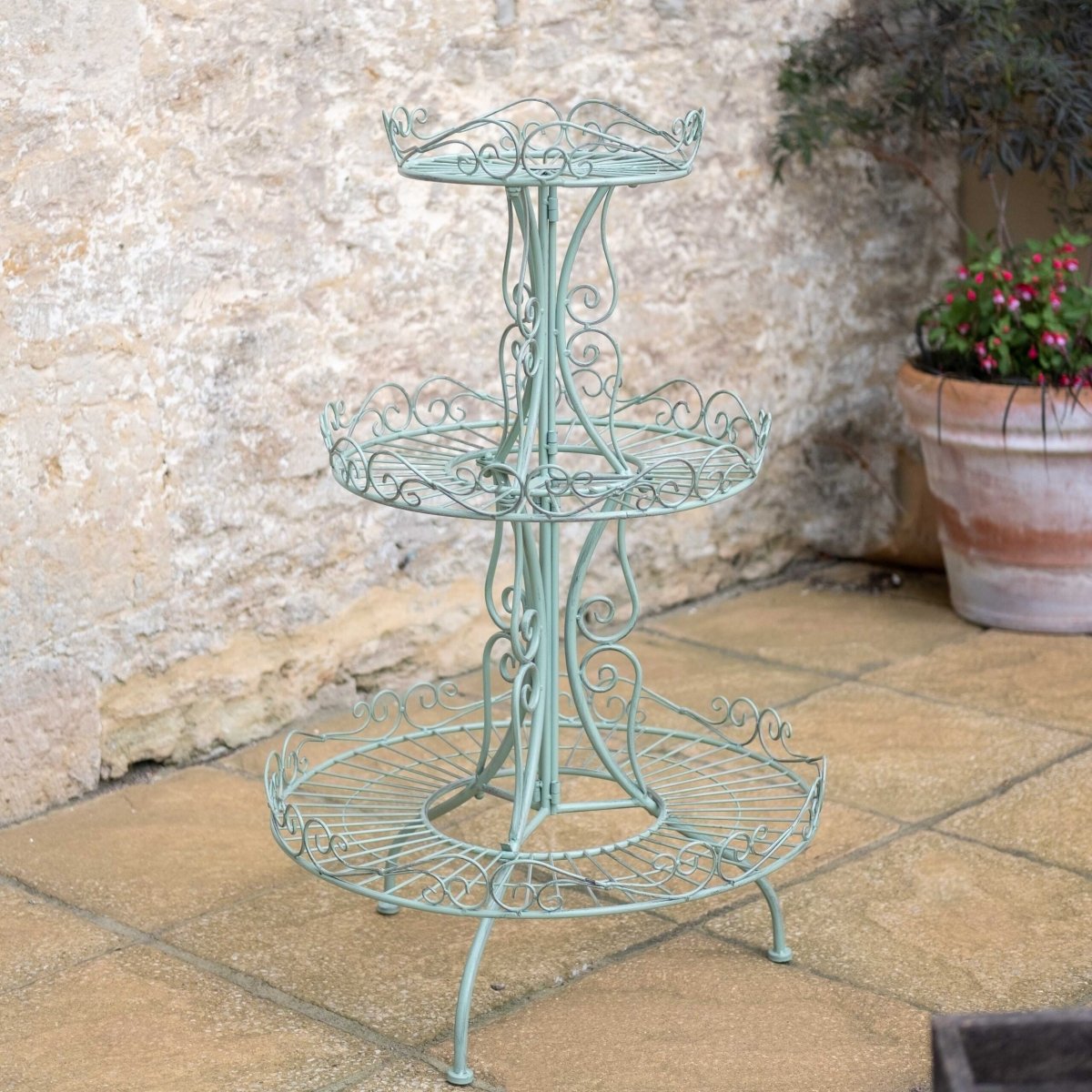 Showcase your plants in style with this green outdoor metal plant stand, a practical and elegant addition to your garden or patio.