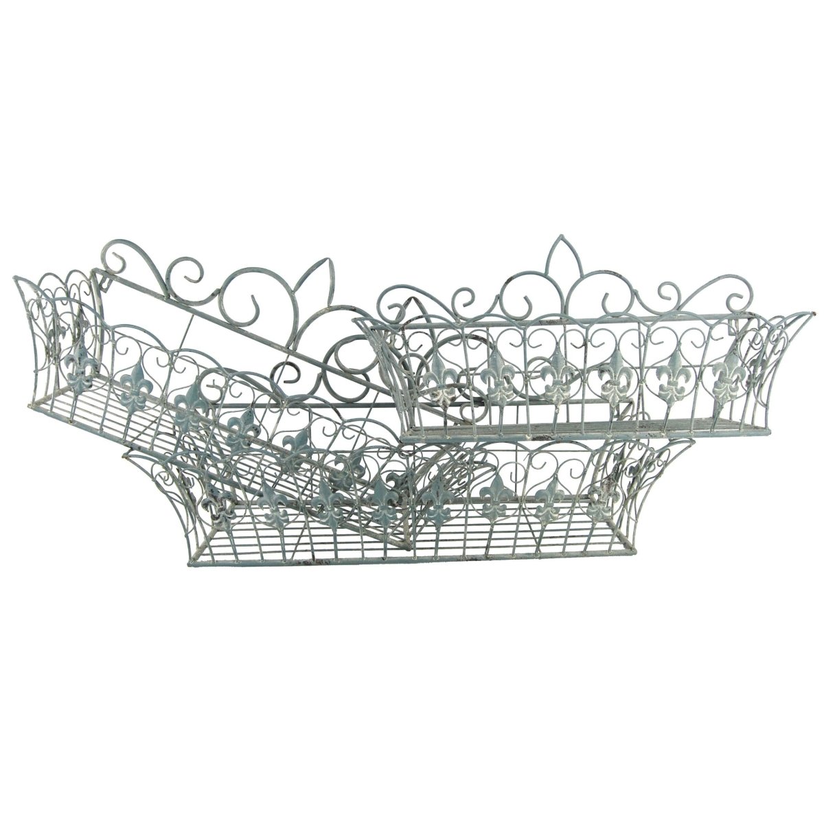 Infuse your garden or balcony with vintage charm using this set of 3 antique blue rust outdoor window box planters, crafted for durability.