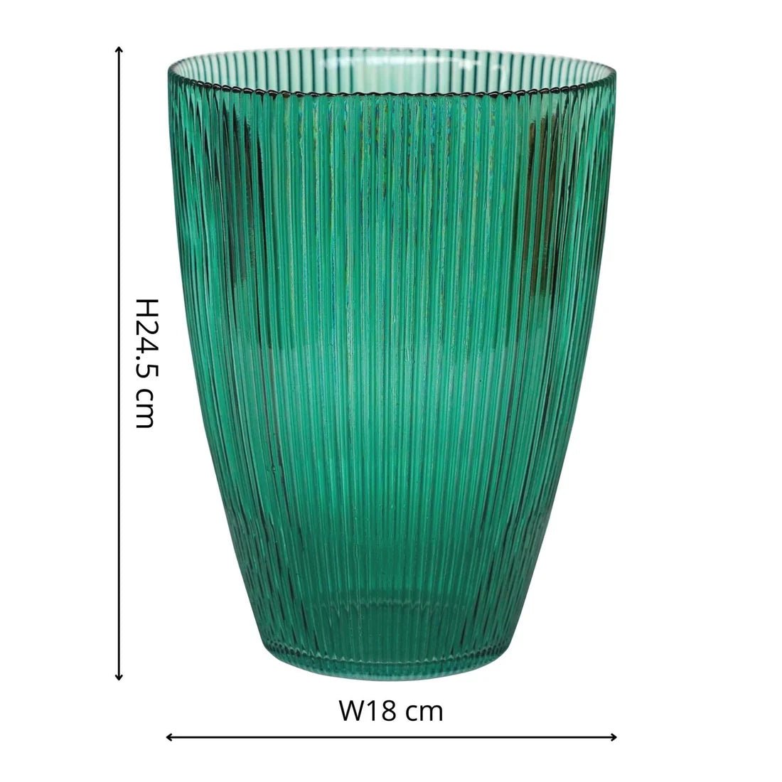 Emerald Ribbed Tall Vase H24.5Cm W18Cm