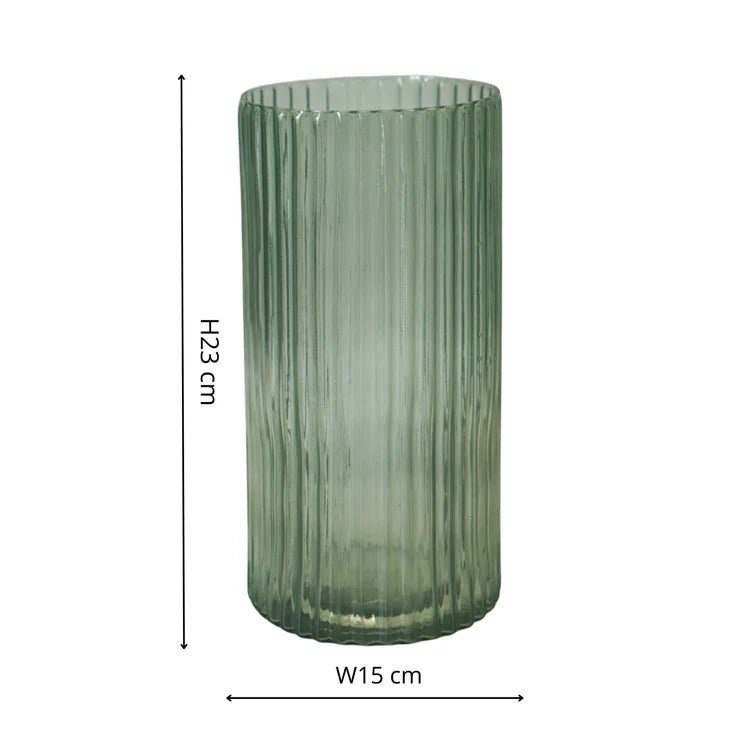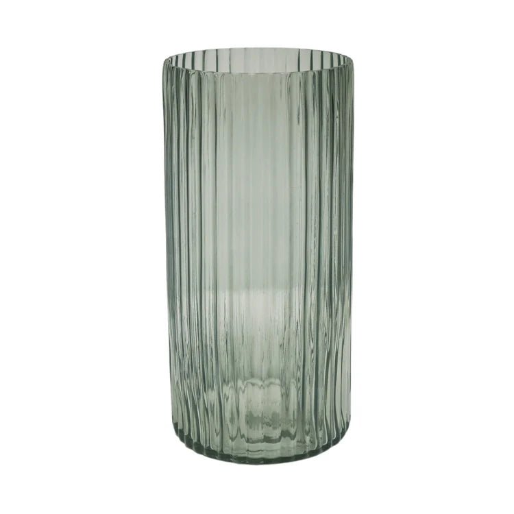 Daphne Indoor Sleek & Textured Ribbed Cylinder Glass Vase - Sage Green