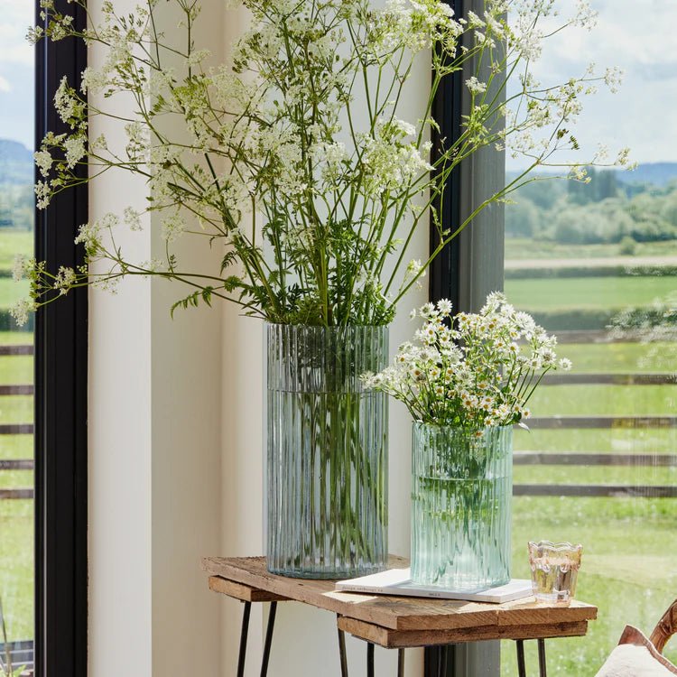 Indoor Sleek & Textured Ribbed Cylinder Glass Vase - Sage Green Luxury Home Decor Garden & Outdoor And Gifts