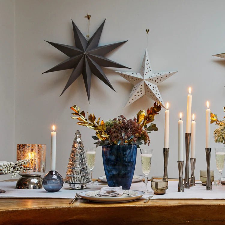 It's time to deck the halls in glamorous style with this regal silver tiered glass vase from Decor Sanctuary UK. Crafted from gleaming glass with a luxe metallic finish, it cuts a striking silhouette at 27.5cm tall with its stacked cylindrical tiers.