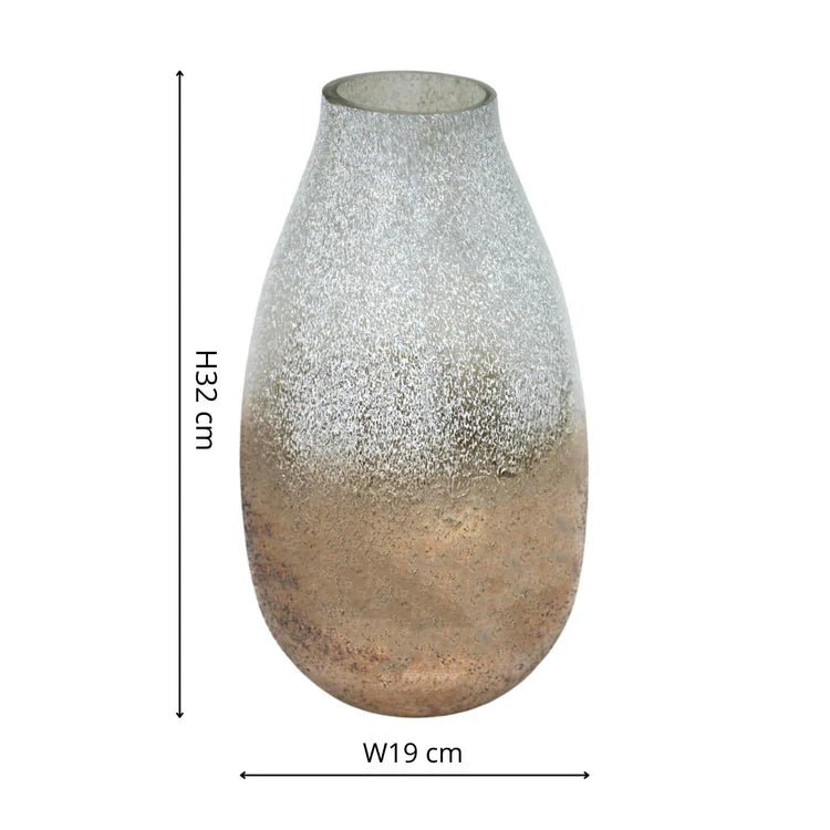 Festive opulence arrives in tall order with this artisan glass vase. Soaring to an impressive 32cm height with its rich gold hue and eye-catching silhouette, it's a Christmas home decor showpiece that demands centre stage.