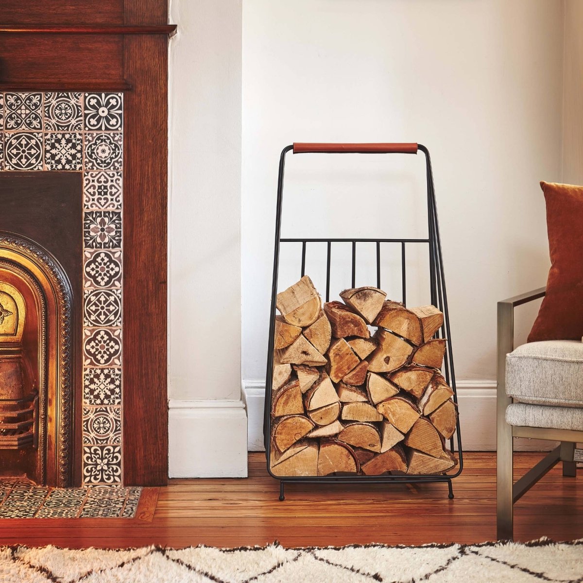 With its modern, minimalist lines, it makes a striking accent piece-but most importantly, it ensures you always have ready access to firewood for keeping the home fires burning bright all season long.