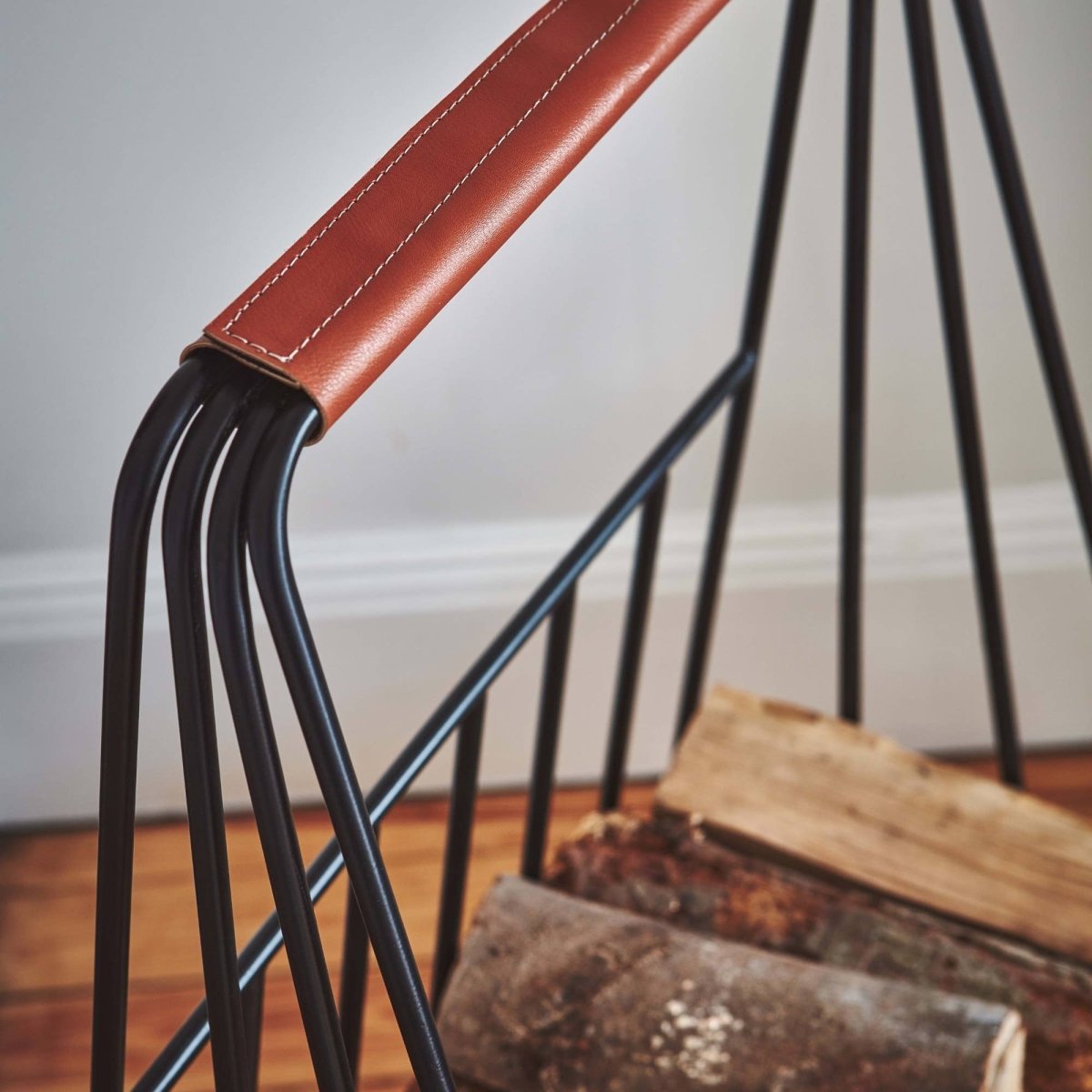 This indoor contemporary log trolley strikes the perfect balance of style and utility. Crafted from sturdy black iron with a supple leather handle, it cuts a handsome figure while providing a highly functional way to store and transport logs.