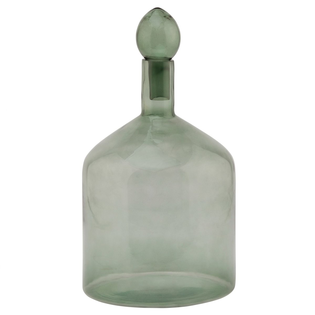 This is the Smoked Sage Glass Bottle With Stopper. This ornamental glassware is a perfect partner to our new Stamford furniture range, injecting some subtle and soothing tones to its display cabinets and surfaces. Matching taller shaped bottle and stopper available for a beautiful staggered height display.