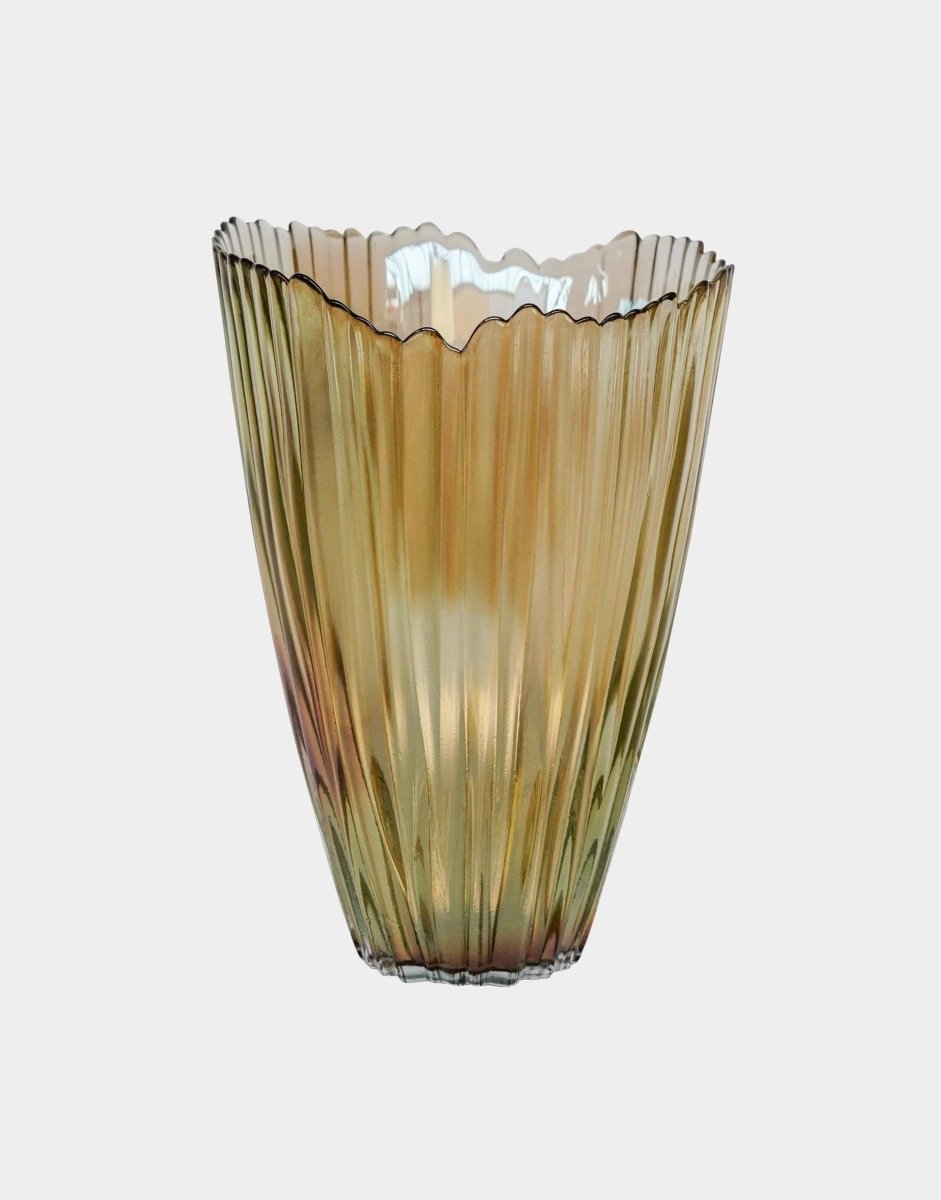Amber Rippled Glass Vase H25Cm W14.5Cm Luxury Home Decor Garden & Outdoor And Gifts