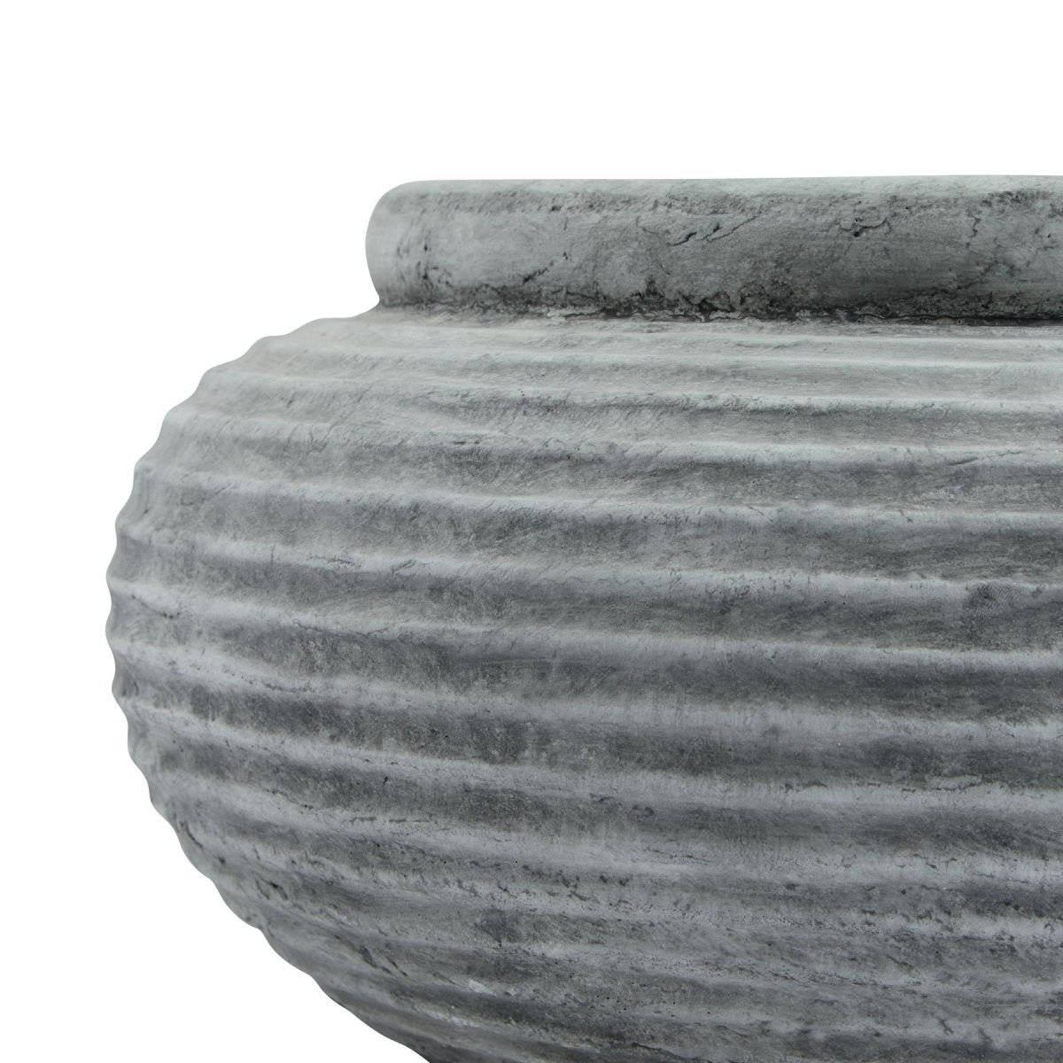 Round Ribbed White & Grey Ceramic Indoor Planter