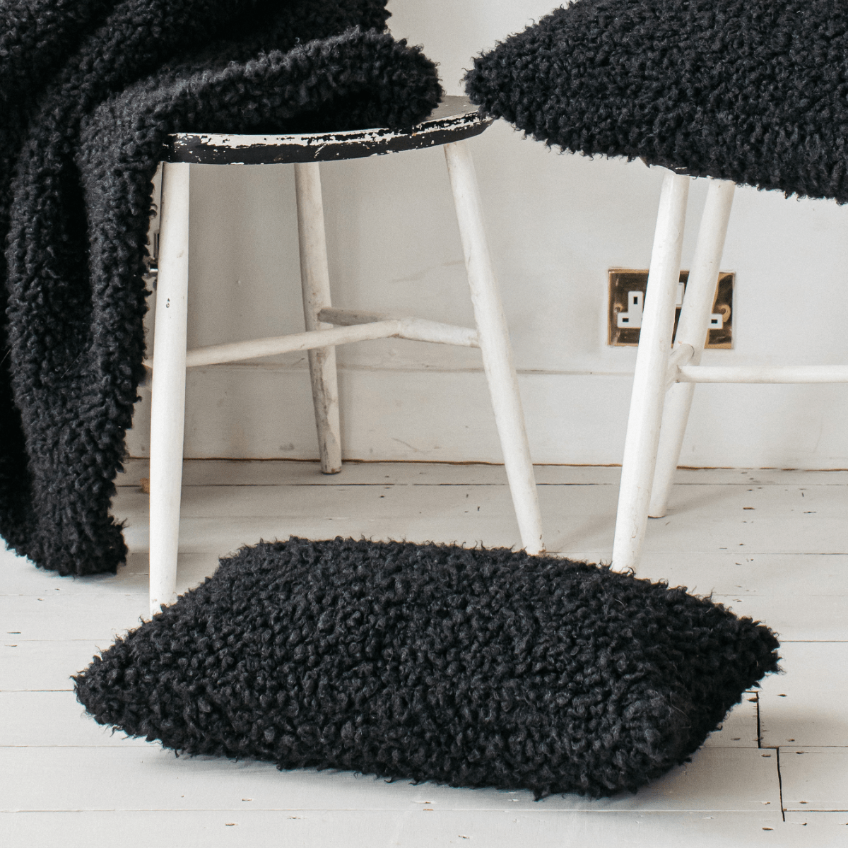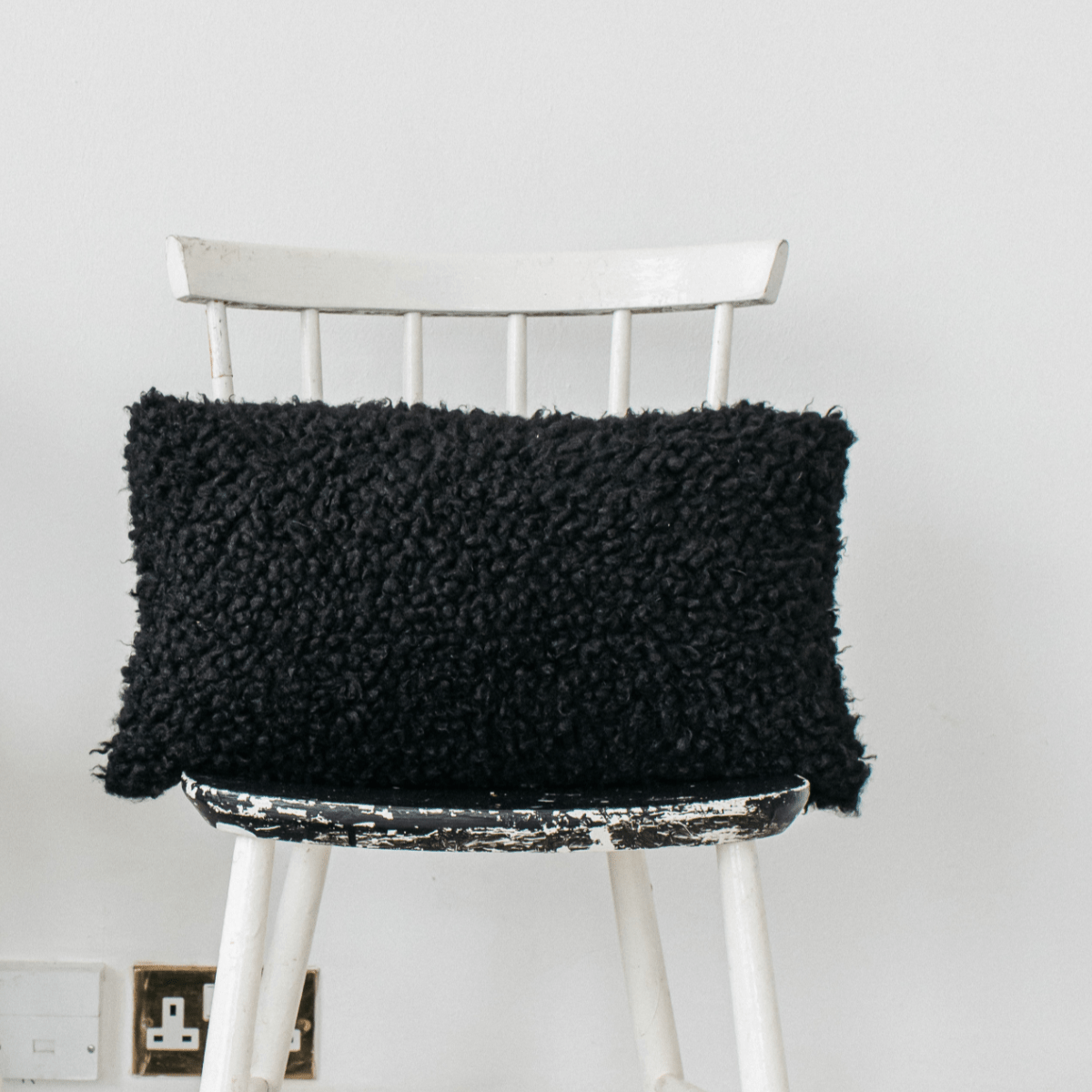 Add a touch of sumptuous luxury to your home with this black boudoir cushion, crafted from vegan-friendly 100% polyester vegan sheepskin.