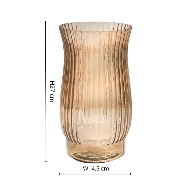 Retro flair meets modern style in this tall glass vase. With its ribbed texture and vibrant apricot orange hue, it channels the groovy 1960s while livening up any interior space. This sculptural cylindrical vase, ethically crafted by Indian artisans, is an artistic display piece perfect for fresh or faux artificial flowers. Bring nature indoors and infuse your home, office, bedroom or conservatory with an energising pop of colour and greenery. Set it on a side table or console as an accent piece, or use it as a stylish centrepiece surrounded by lush blooms. Whether incorporated into your living room, kitchen, lounge or hallway decor, this tall glass vase doubles as an ideal present - and interior design statement.