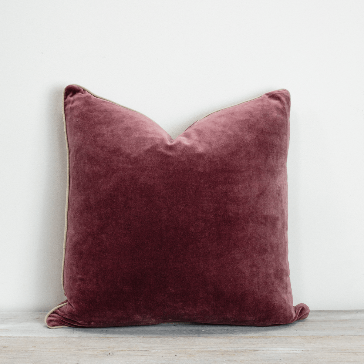 Featuring an Indian cut velvet face and reverse, this design is accented with natural linen-look piping for understated sophistication. The luxury feather pad as standard ensures indulgent comfort, making it perfect for sofas, chairs or layering with other cushions from the Unari Velvet collection.