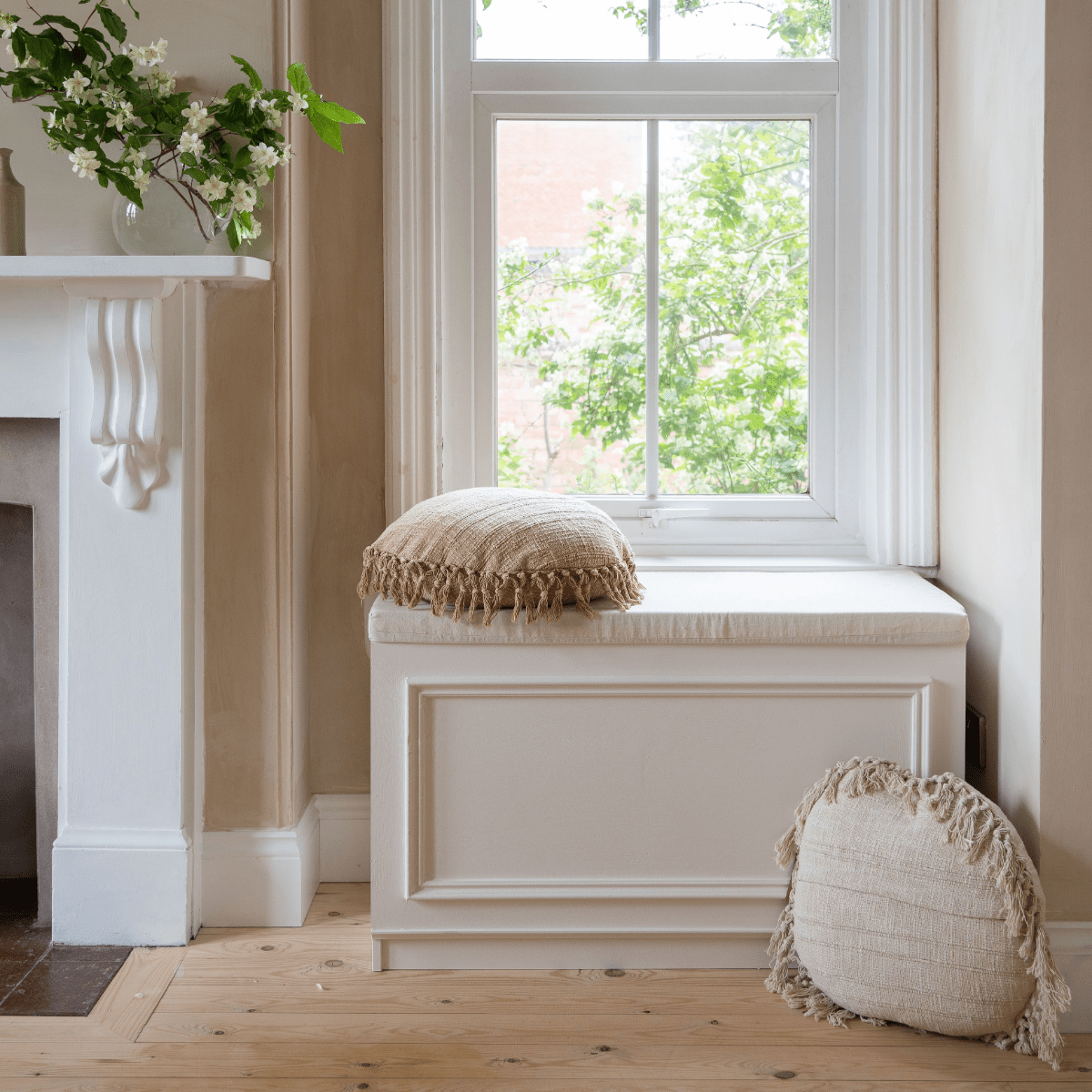 Made from a soft cotton blend, its honey tone and large tassels bring a warm, inviting aesthetic to sofas, chairs, or beds. The luxury feather pad ensures plush comfort, making it as cosy as it is stylish.