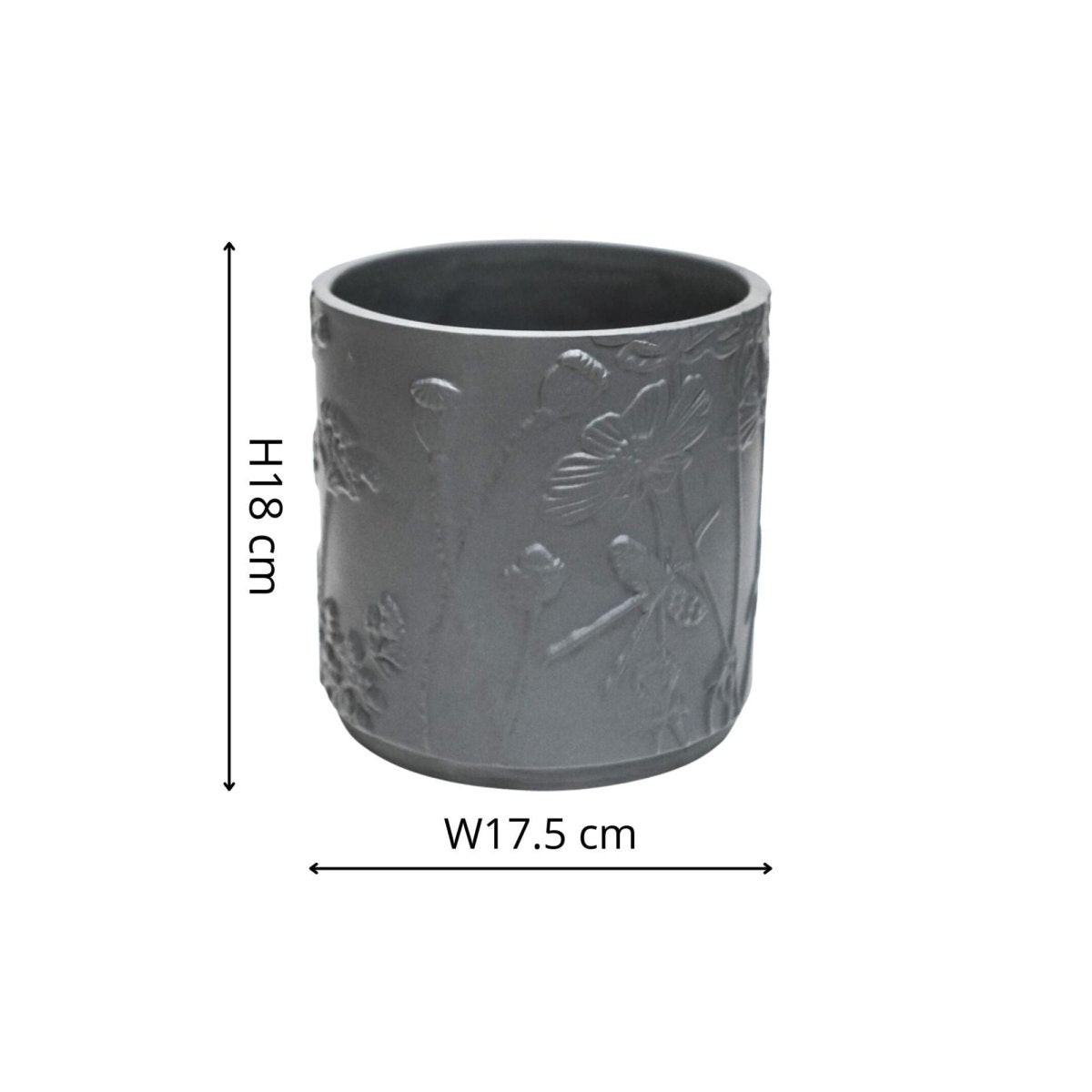 Small Kew Gardens Stoneware Dark Grey Indoor Planter - Handmade With a Meadow Flowers Embossed Pattern