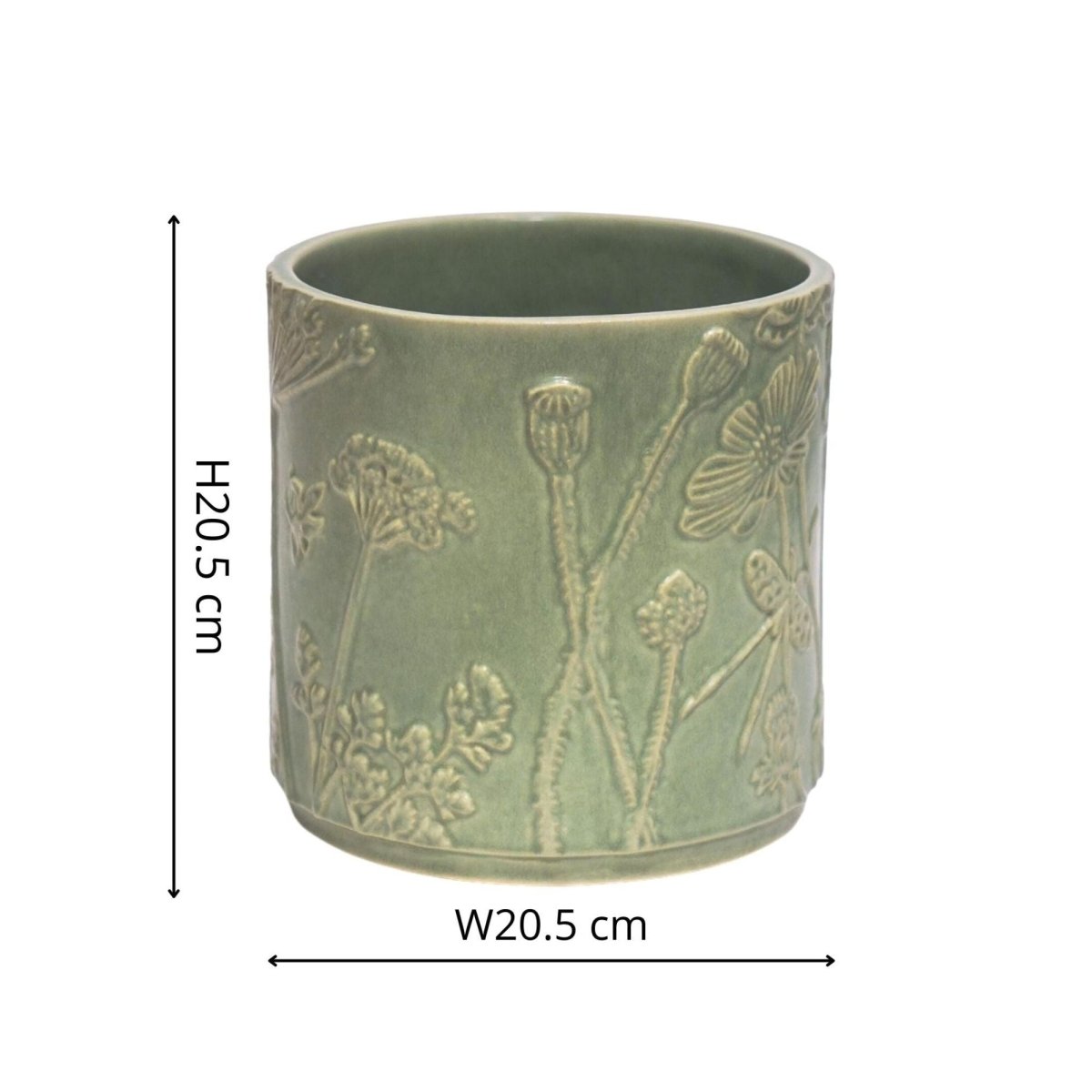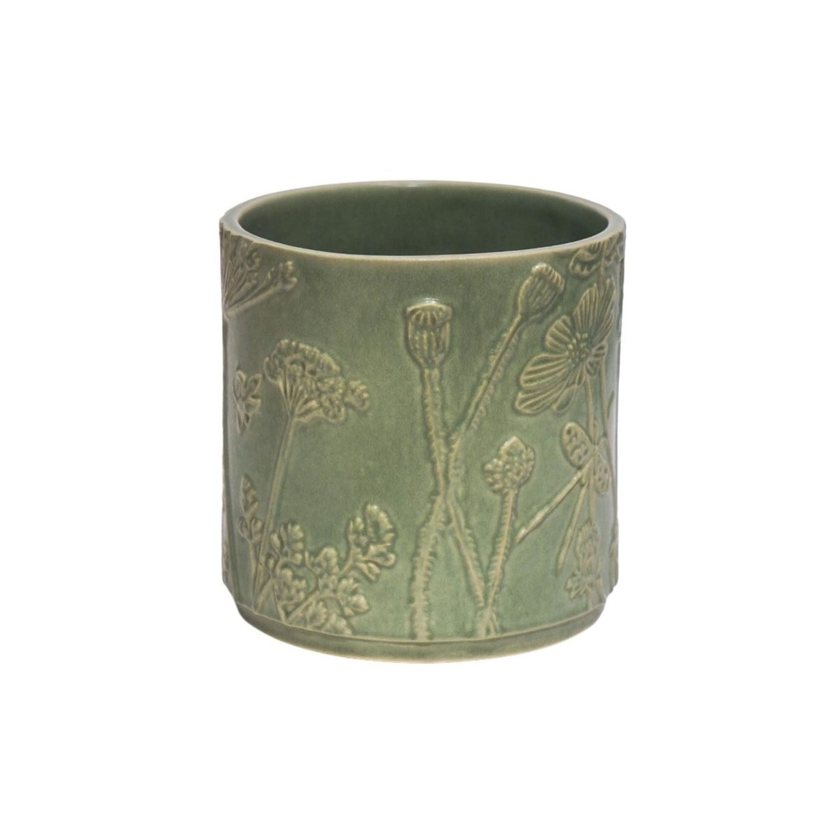 Medium Kew Gardens Stoneware Ivory Indoor Planter - Handmade With a Meadow Flowers Embossed Pattern