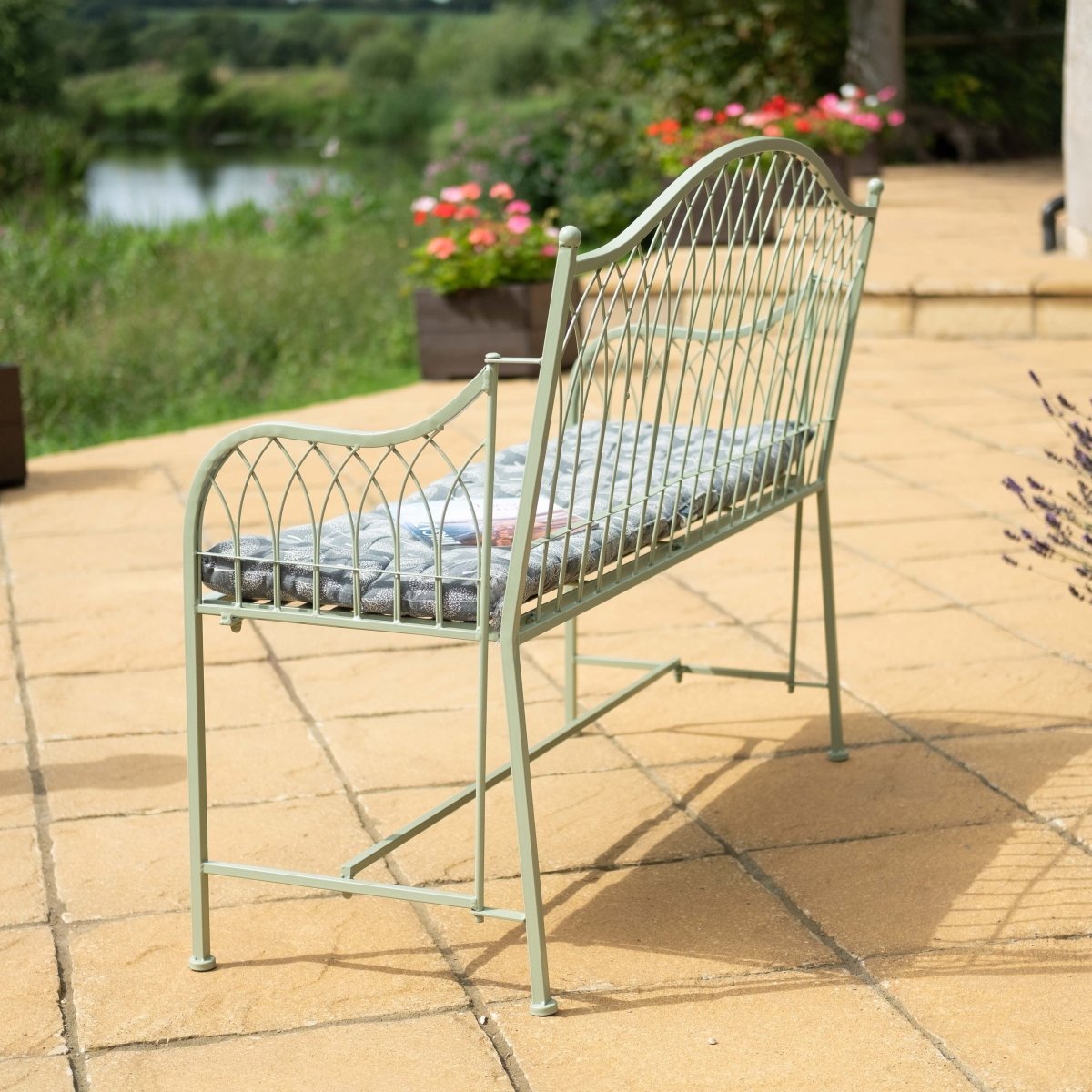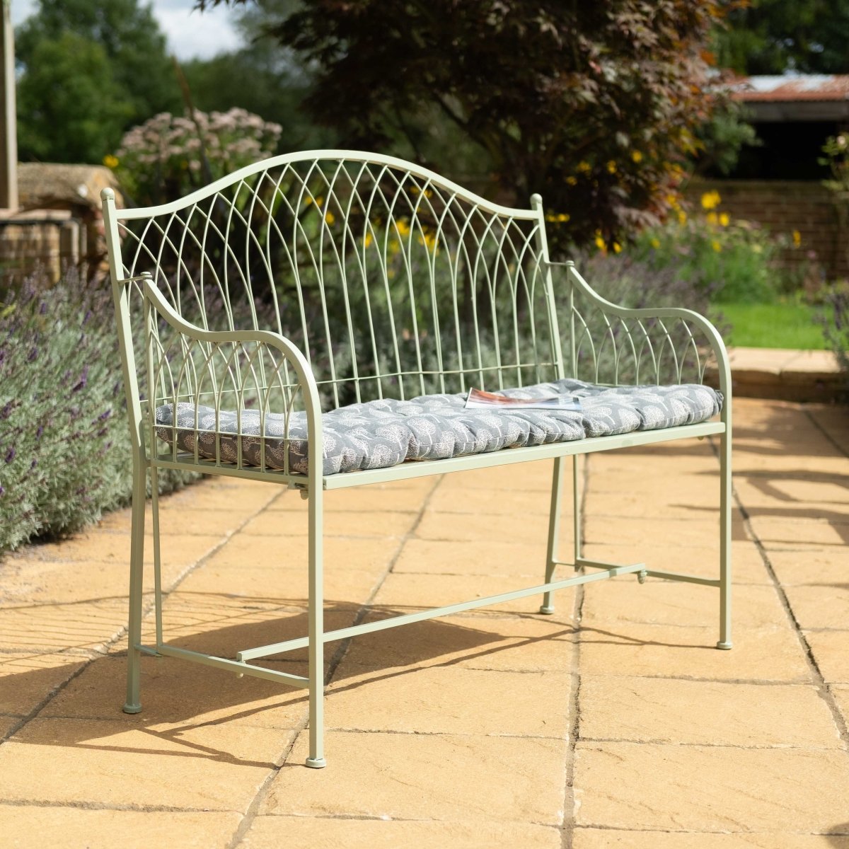 Relax in style with the Hampton Garden Bench, a sturdy steel piece designed for outdoor spaces with a serene green finish.
