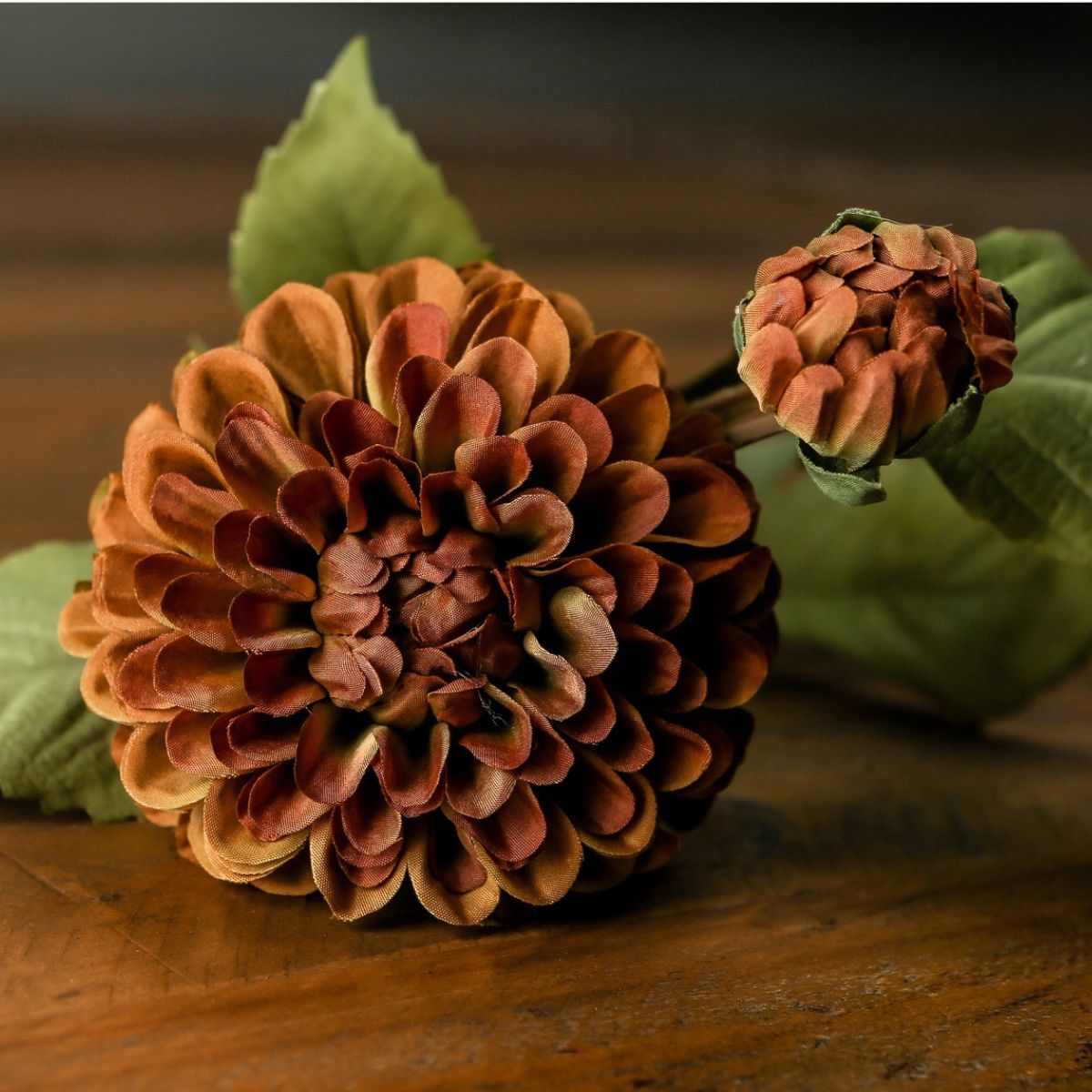 Deep Mustard Dahlia - Realistic Artificial Flower Single Stem Luxury Home Decor Garden & Outdoor And Gifts