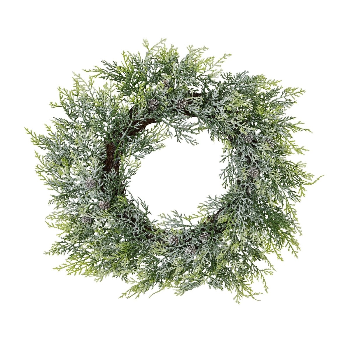 Realistic Artificial Frosted Pine Wreath With Pinecones