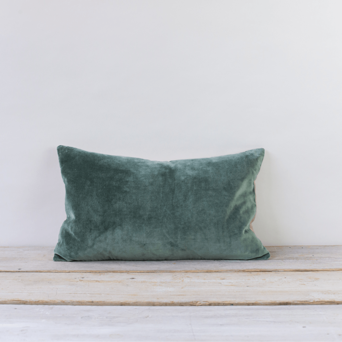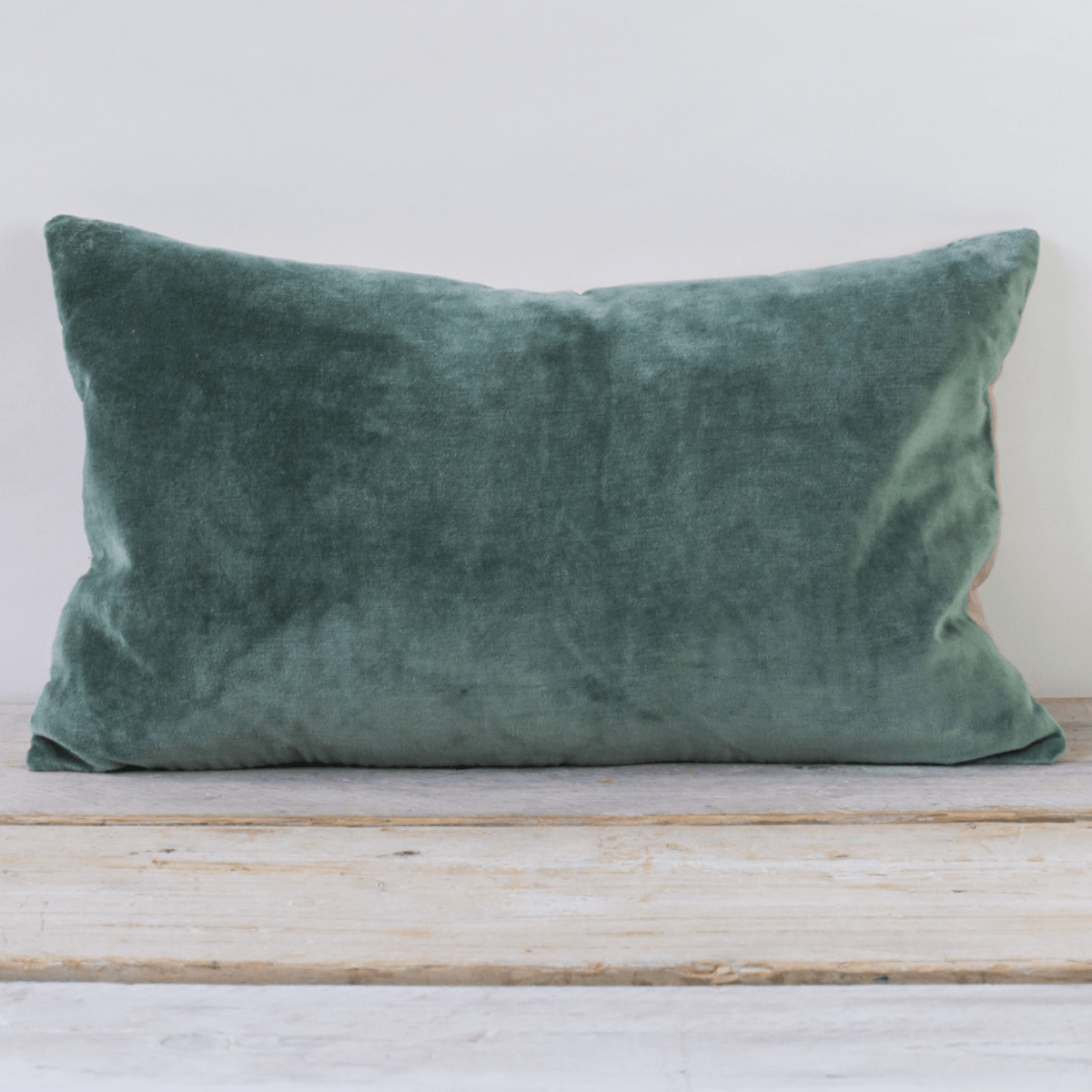 Introduce a splash of modern sophistication to your space with this sea green rectangular cushion, crafted with a soft 100% cotton velvet blend face.