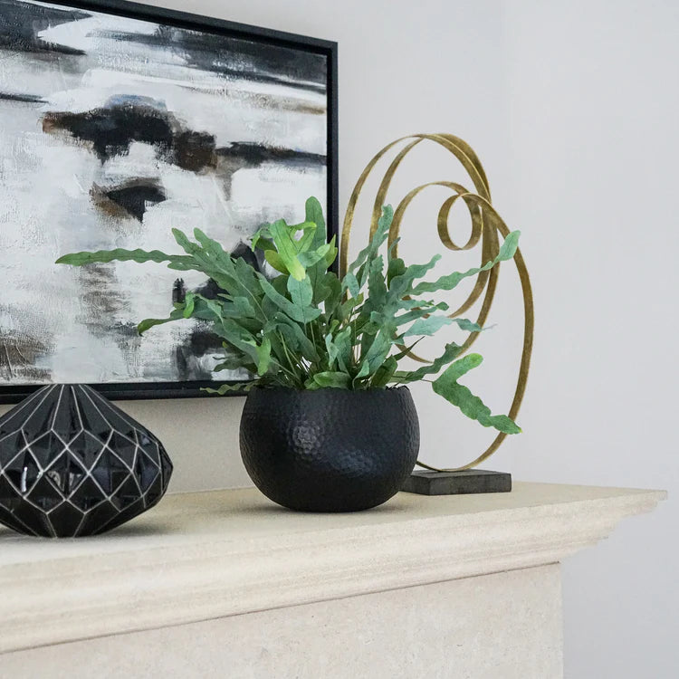 Bring a bold, industrial vibe to your home with this hammered silver indoor planter, designed for interior design fans and enthusiasts.